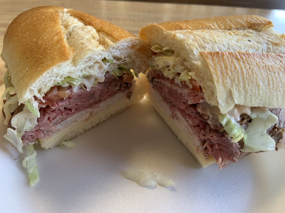 Roast beef, boiled ham Swiss cheese lettuce, tomato, Russian dressing.